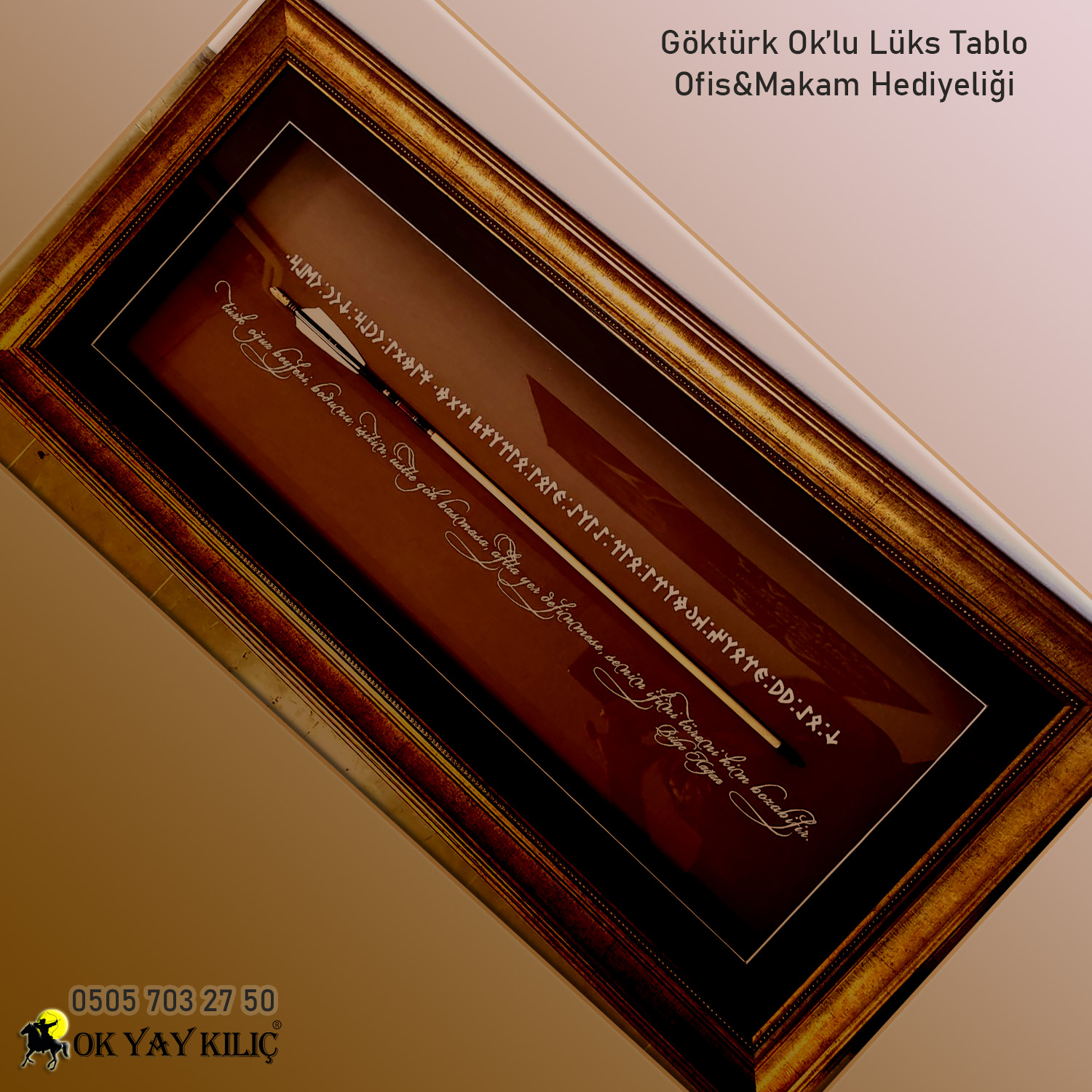 Göktürk Ok'lu Hediyelik Tablo (Kahverengi-Siyah PAspartu)